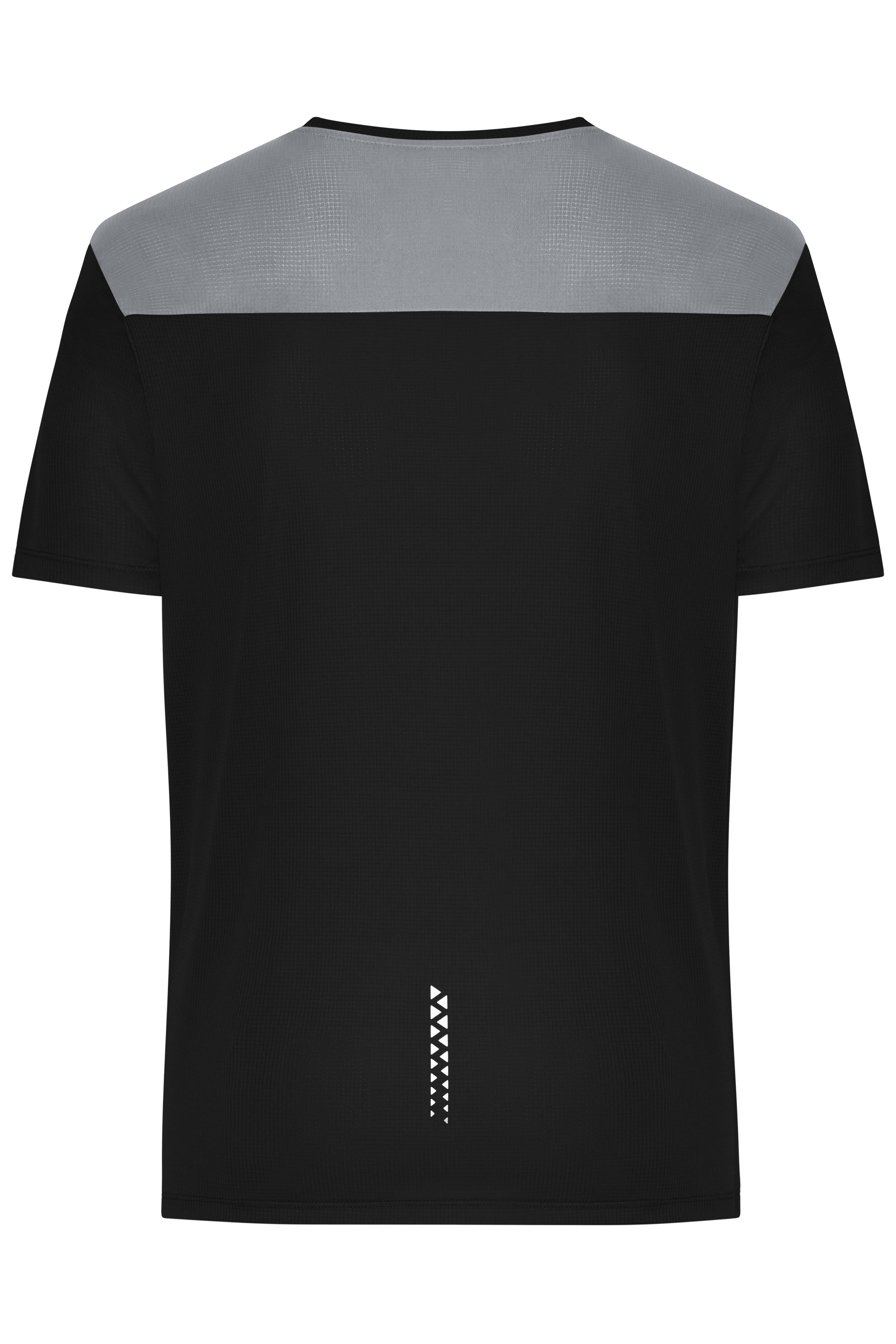 Reflective print on the back above the hem and on the sleeves at upper arm height (not PPE)