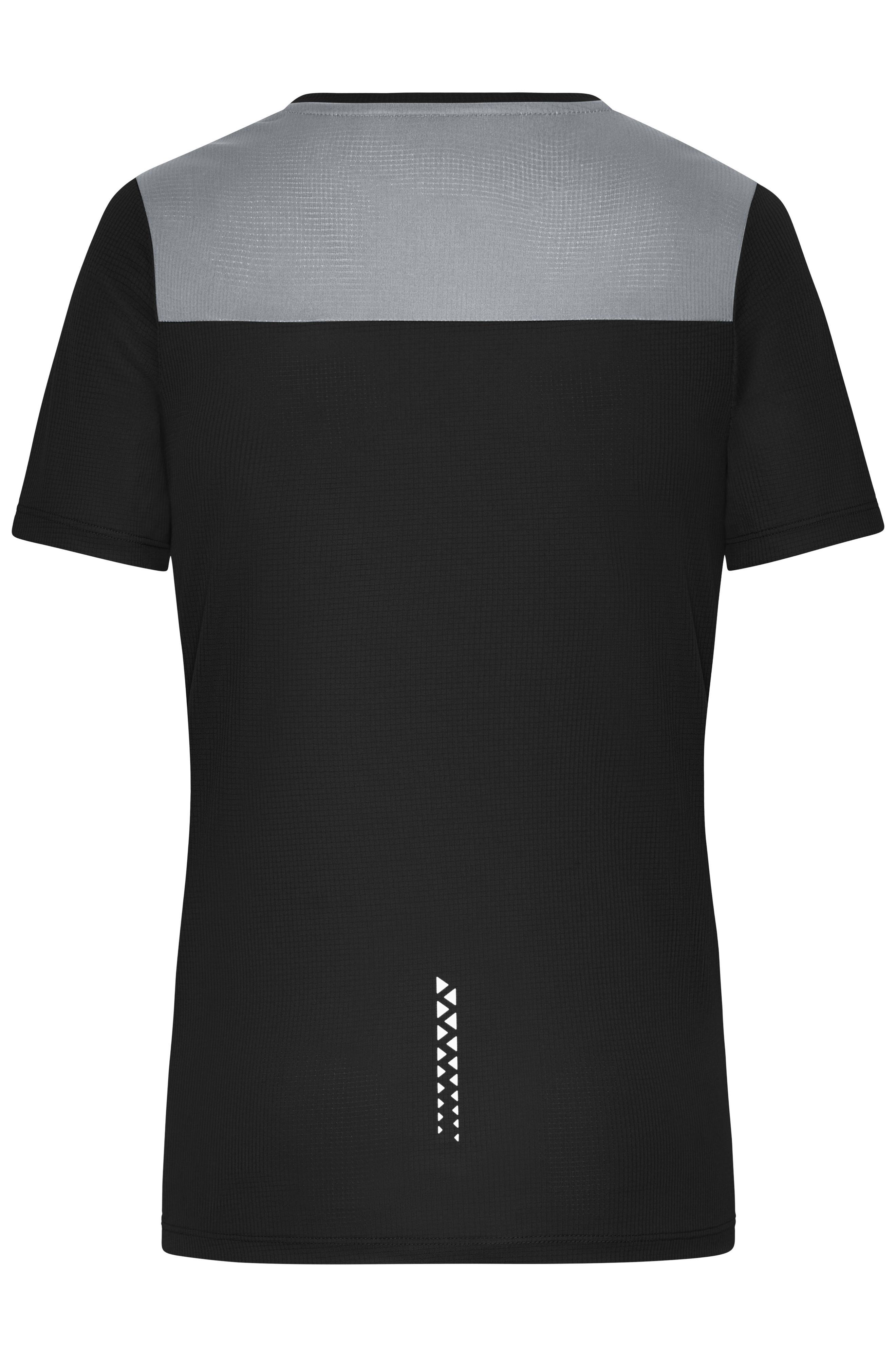 Reflective print at the back above the hem and on the sleeves at upper arm height (not PPE)