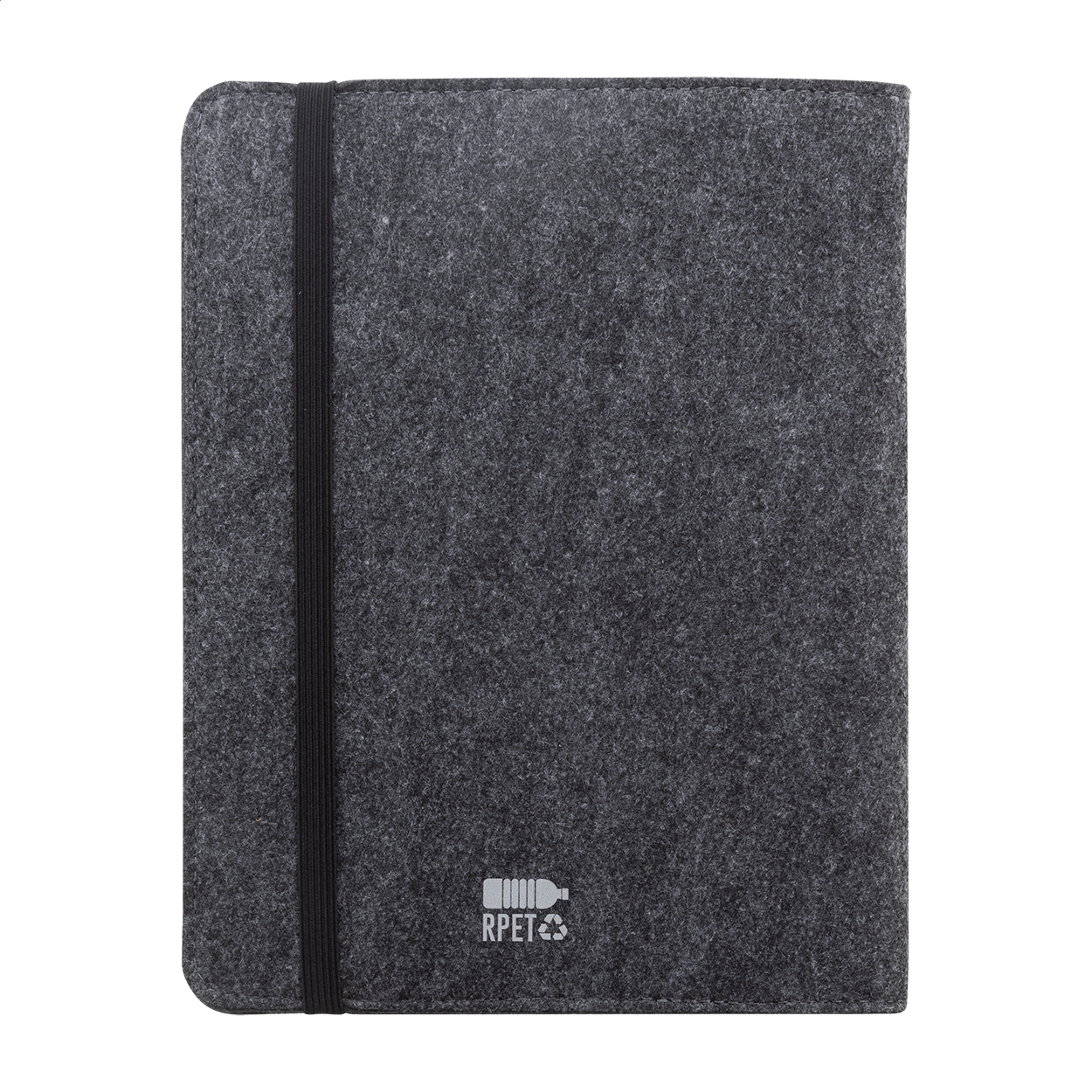 Mapa za dokumente veličine A5, RPET filca s prednjim i višestrukim unutarnjim džepovima organizatora. S notesom od 20 listova s crtama od recikliranog papira.