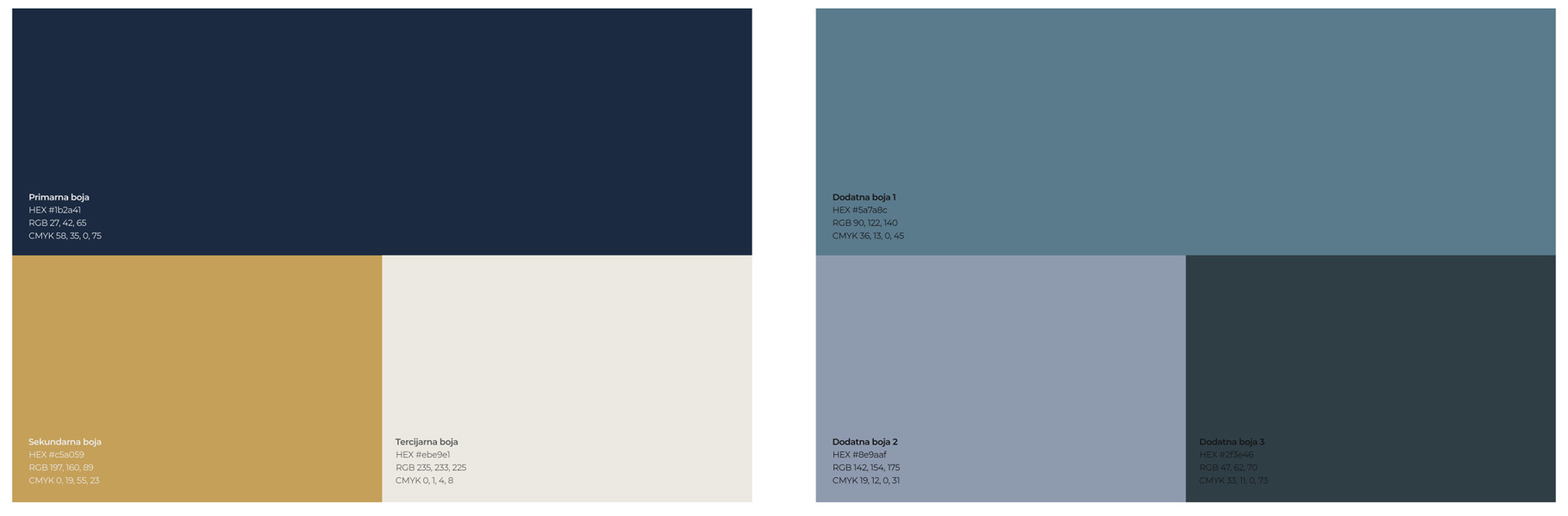 Nova paleta boja - temeljena na dubokoj tamno plavoj (Deep Navy) i zlatnoj boji koje komuniciraju profesionalnost, pouzdanost i premium kvalitetu.