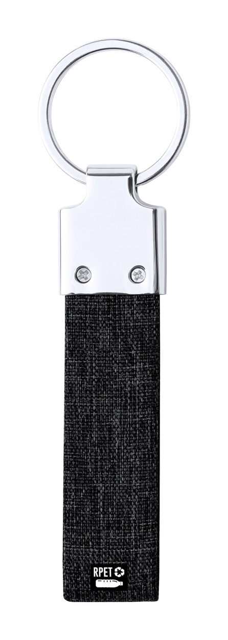 Metalni privjesak za ključeve s RPET poliester trakom.