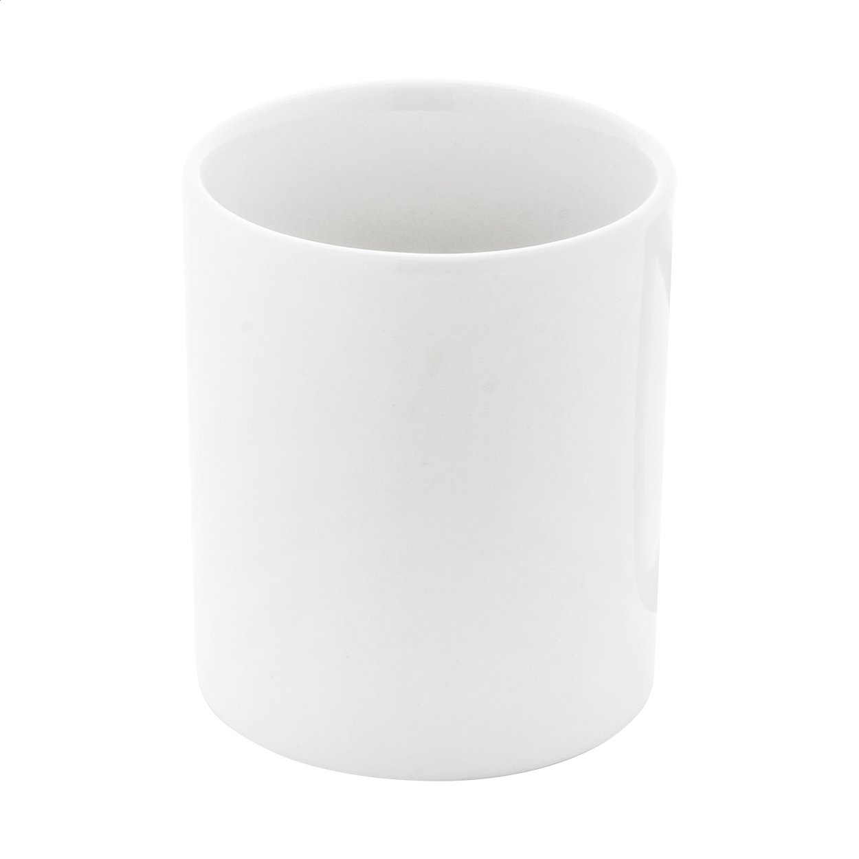 Bijela keramička šalica za sublimaciju, otporna na perilicu posuđa, 300 ml. U bijeloj papirnatoj kutiji.