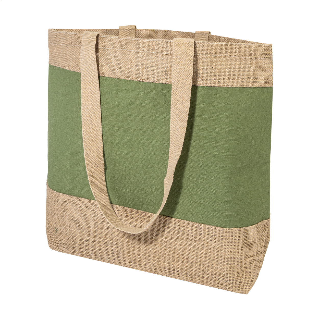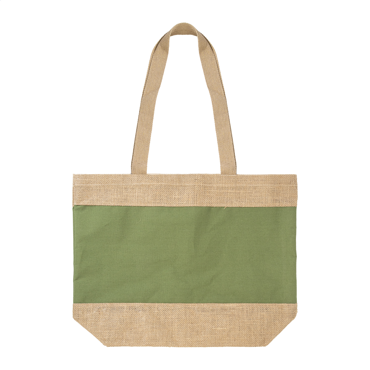 Torba za plažu u kombinaciji laminiranog juta i laminiranog pamuka s dugim ručkama.