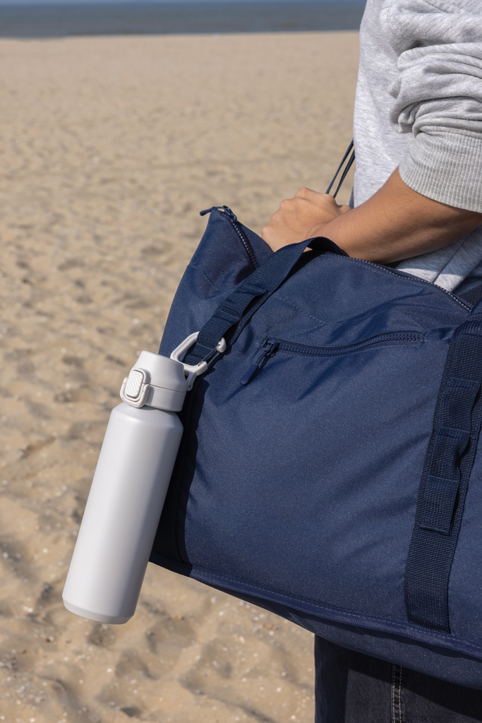 The Via RCS bottle is made from certified recycled 304 steel. This waterbottle features single-wall construction with a unique screw-on and lockable leak-resistant lid. Single hand operation. Press to open the lid for easy sip. Can be used for cold drinks only. Hand wash only. Made with RCS (Recycled Claim Standard) certified recycled materials. RCS certification ensures a completely certified supply chain of the recycled materials. Total recycled content: 73% based on total item weight. BPA free. Bulk packed. 600 ml. capacity
