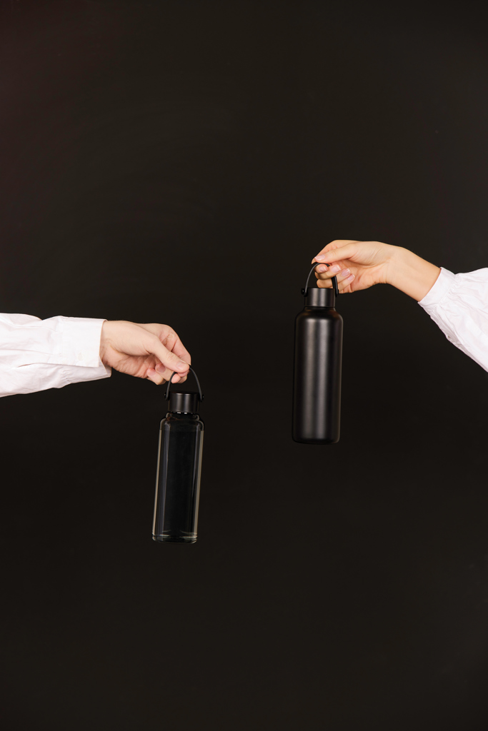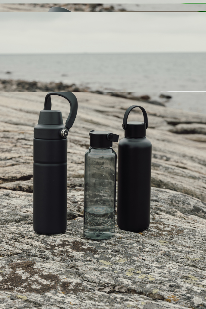 Crafted from BPA free RCS certified recycled PET, this water bottle is perfect for your daily hydration needs. Its modern and minimalistic design defines the popular Baltimore collection, making it both practical and visually appealing. The PU handle together with the lid in stainless steel adds a touch of refinement. Not dishwasher or microwave safe, only handwash. Cold drinks only. Certified by RCS (Recycled Claim Standard), RCS certification guarantees that the entire supply chain of recycled materials is certified. The total recycled content is based on the overall product weight. This product contains 61% RCS certified recycled PET.